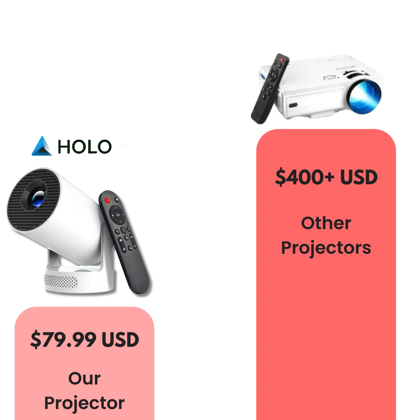 Why spend hundreds when you can get the same premium projection quality for only $79.99? Holonine delivers the same brightness, clarity, and build quality as mainstream names without the markup. Experience top-tier performance at a price that actually makes sense.